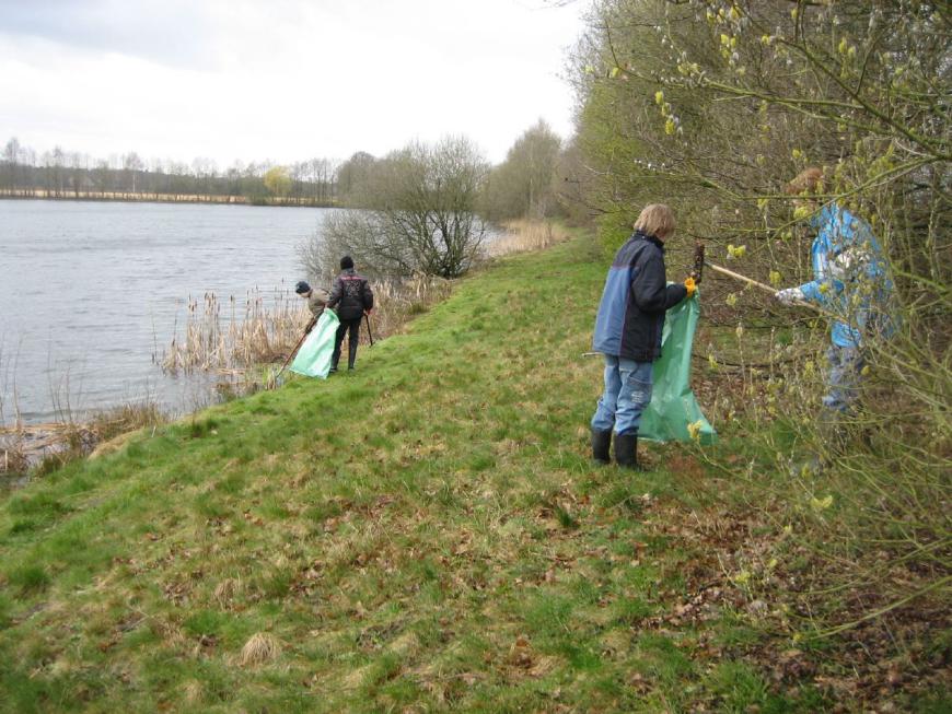 Auch unangenehmer Nieselregen und die sehr frühe Samstagmorgenstunde konnte zahlreiche Mitglieder der Jugendgruppe des Fischereivereins Löningen nicht davon abhalten, mit Stiefel und Harke zusammen mit ihren erwachsenen Betreuern unter Leitung der Jugendwarte Jürgen Frilling und Markus Beintken die Uferflächen der Vereinsgewässer vom Unrat des vergangenen Jahres zu befreien.