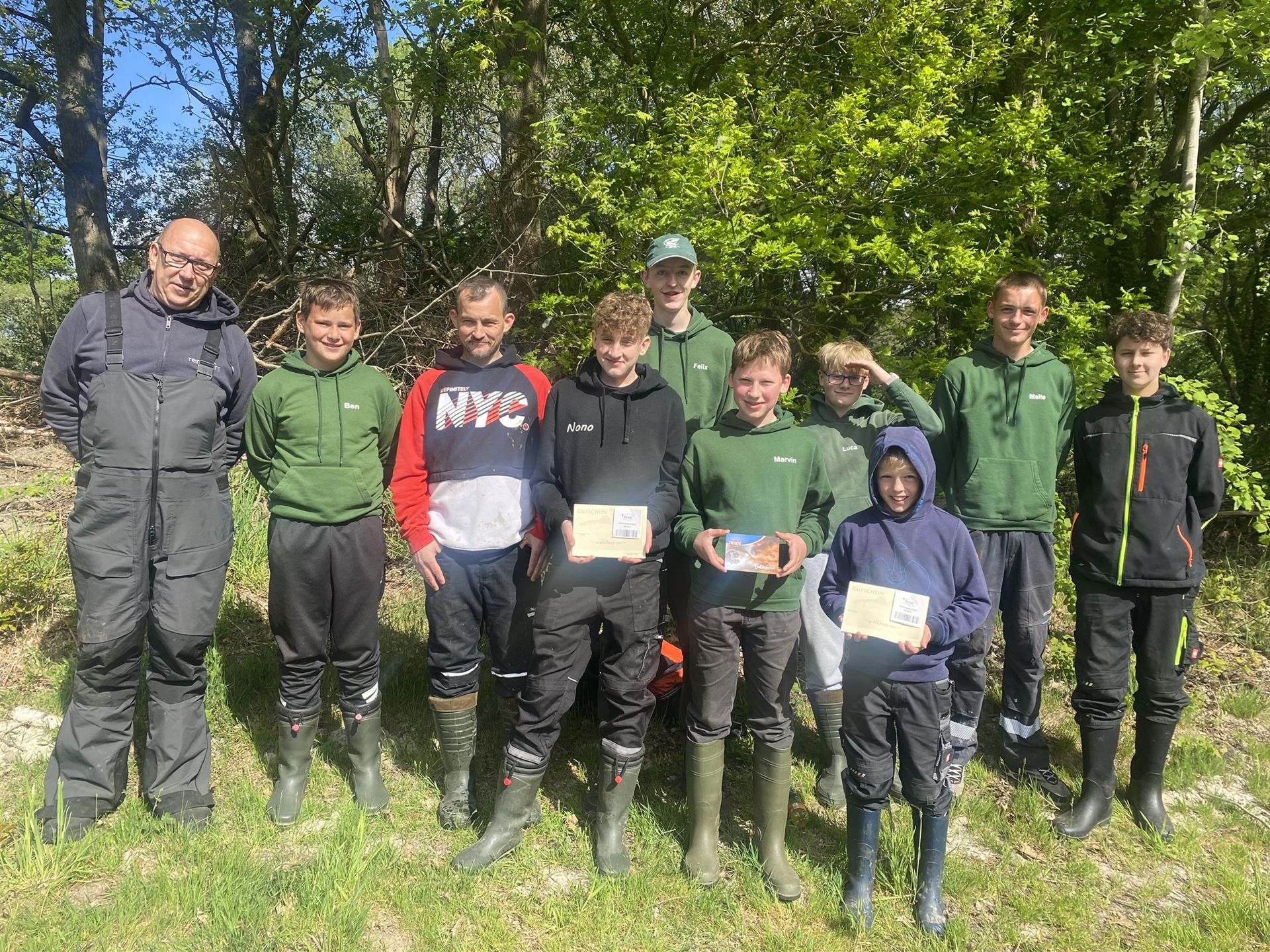 Das Anangeln der Jugendgruppe wurde in diesem Jahr am Hans-Marquardt-Teich in Ehren ausgerichtet. Die Jugendwarte Holger Eilermann und Marcel Mätze konnten zu dieser Veranstaltung 9 Jungangler begrüßen. Im Normalfall ist der Teich für seine sehr guten Weißfischfänge bekannt, so dass für diesen Tag auf gute Fänge gehofft wurde. Leider meinte es Petrus an diesem Tag alles andere als gut mit unserem Nachwuchs und es konnten sich nur drei Teilnehmer in die Fangliste eintragen. Ob der massive Kälteeinbruch, der sehr niedrige Wasserstand und der starke Pollenbelag mit Weidekätzchen auf der Oberfläche verantwortlich waren, kann nur vermutet werden. Trotzdem gibt es auch eine schöne Geschichte zu erzählen. So konnte Max Beintken als jüngster Teilnehmer bei seinem ersten Hegefischen mit einem maßigen Schuppenkarpfen die Veranstaltung gewinnen. Der Silberplatz ging an Noel Mätze und über den Bronzerang konnte sich Marvin Ochs freuen. Für das 2. Wertungsangeln „Sommerabendangeln Altarm Haseknie“ am 24.05.2025 hoffen die Jugendwarte auf gute Beteiligung. Informationen zu dieser Veranstaltung werden rechtzeitig über die WhatsApp Gruppe bekanntgegeben.