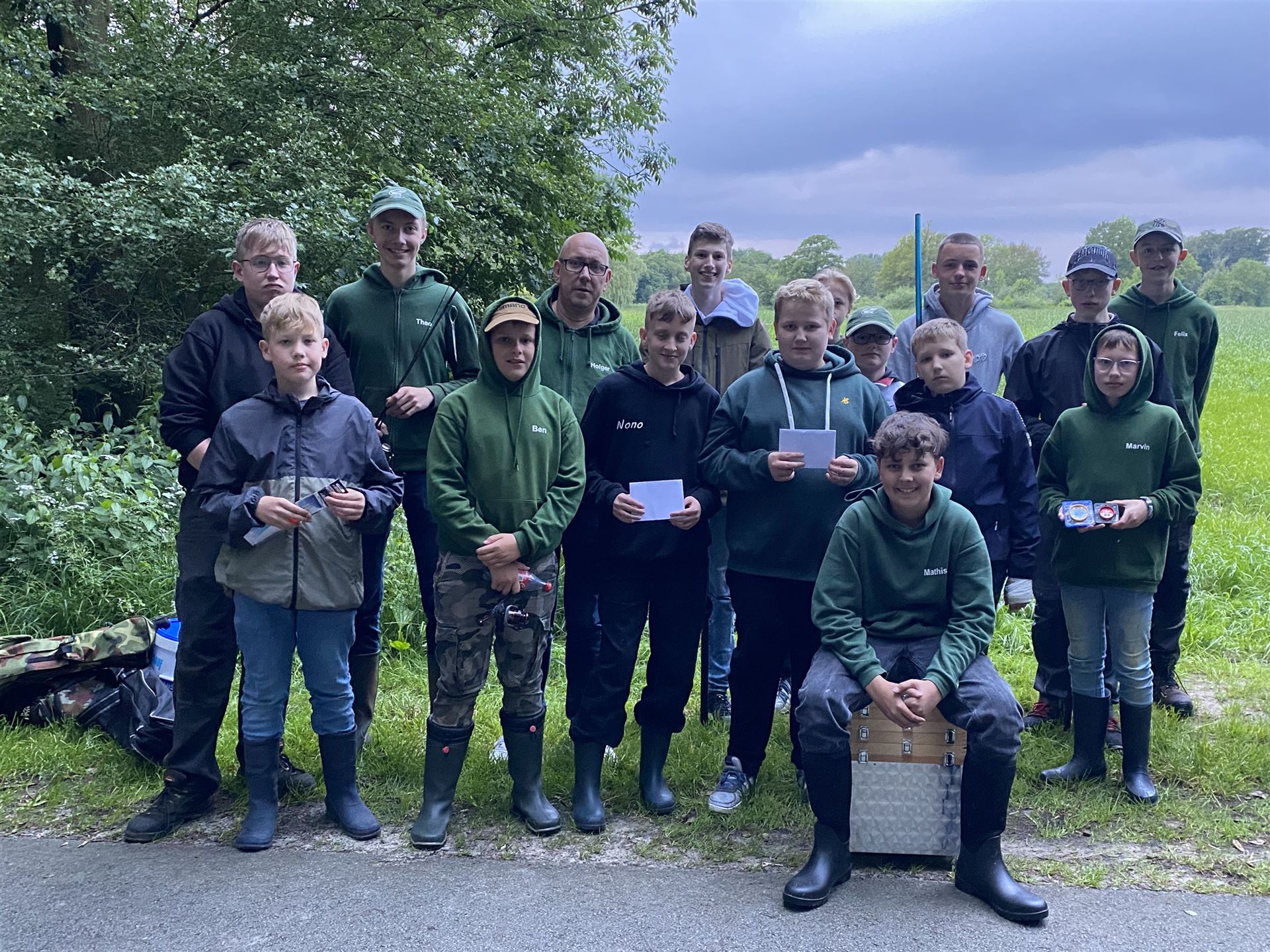 Besonderes Petri Heil hatte an diesem Tag, Mathis Alder, der eine wunderschöne und sehr kapitale Schleie mit einem Gewicht von 2.441 Gramm fangen konnte. Mit diesem Fisch konnte Mathis natürlich auch die Gesamtwertung der Veranstaltung für sich entscheiden. Auch für die diesjährige Wertung des Fischerkönigs dürfte dieser Fisch schwer zu schlagen sein. Auf dem Silber- und Bronzerang folgten Theodor Flatken und Luca Morasch. Die Plätze 4 – 15 belegten der Reihenfolge nach: Ben Eilermann, Hendrik Ochs, Jonas Baumhöfer, Tim Künken, Paul Wenner, Malte Knobel, Noel Mätze, Lennox Hen, Felix Triskatis, Patrick Többen, Ole Albers und Marvin Ochs.