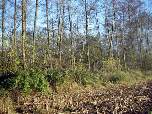 Im Laufe der über 20 Jahre ist hier allerdings hoher Aufwuchs vor allem aus Erlen und Weiden entstanden, der nicht nur das Kleingewässer beschattet, sondern auch für hohen Laubeintrag sorgt.