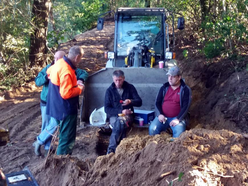 Durch den Einsatz mehrerer Vereinsmitglieder sowie Bagger und Radlader wurde die Böschung hergerichtet und neu eingesät.