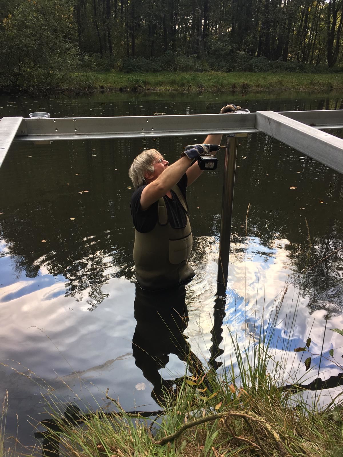 Auch die Absturzsicherung von den mindestens geforderten 15 cm Aufkantung wurde doppelt so hoch gebaut, um eine möglichst große Sicherheit zu gewährleisten. Das gilt ebenso für das Geländer, das höher als die vorgeschriebenen 60 cm ist. Die Höhe der Plattform über dem Wasserspiegel wurde so gewählt, dass Rollstuhlnutzer möglichst selbstständig ihren Fang keschern und anlanden können.