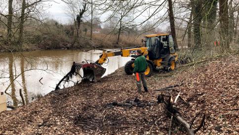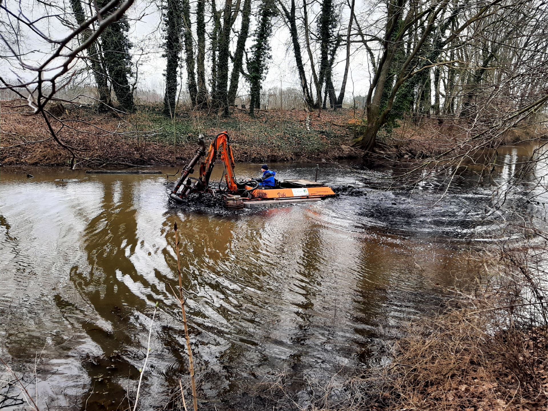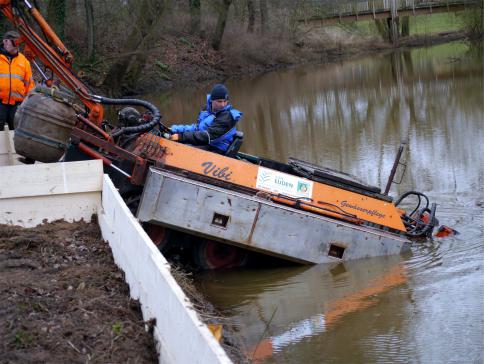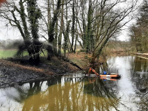 Amphibienfahrzeug befreit Altarme von Schlamm