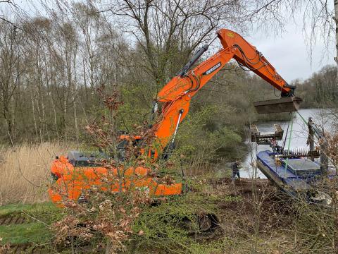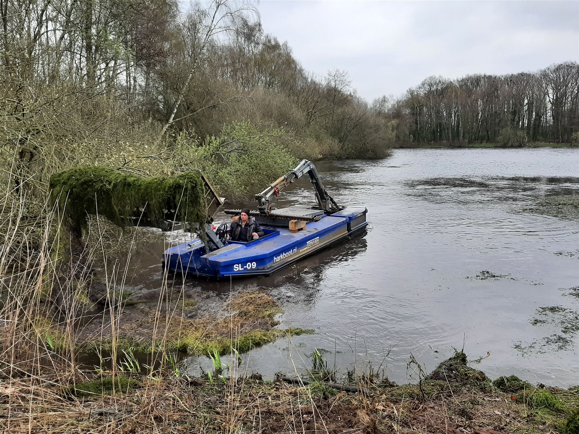 Da ein Spezialgerät einer niederländischen Firma zur Räumung eines Pachtgewässers vom Fischereiverein Löningen angefordert worden war(MT berichtete), wurde das Gerät im Mühlenbachteich zur Räumung dieser Pflanze eingesetzt. Obwohl das Gewässer im Eigentum der Stadt ist, wurden die anfallenden Kosten durch den Fischereiverein allein getragen. Hilfestellung leistete wieder einmal die Hasewasseracht, die mit einem Bagger Unterstützung leistete.