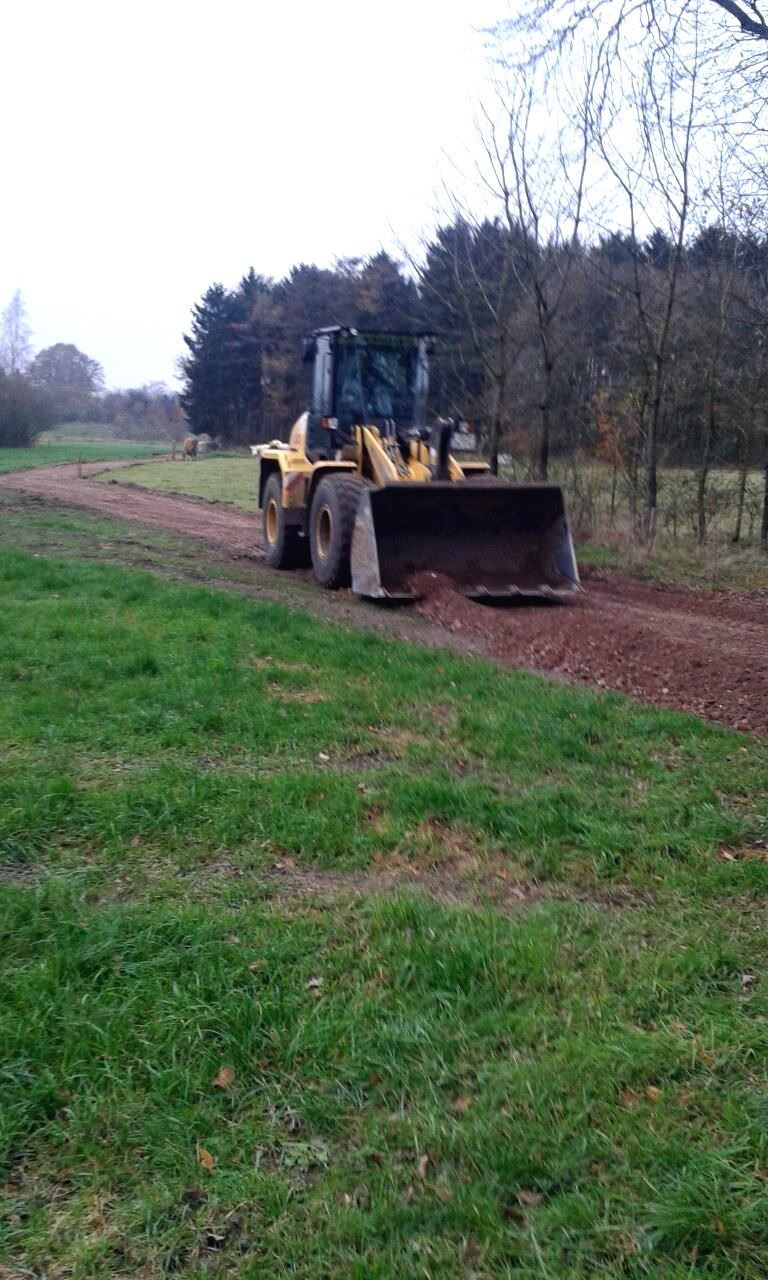 Ende November 2014 konnte endlich nach vielen Terminen und Telefonaten mit Grundstücksnachbarn, Katasteramt, Wegegenossenschaft, Hasewasseracht und der ausführenden Firma der Weg zur Parkfläche am Merschsee befestigt werden.