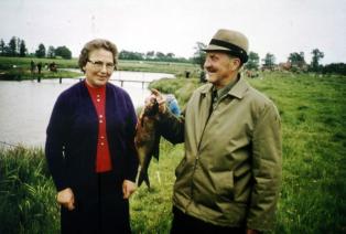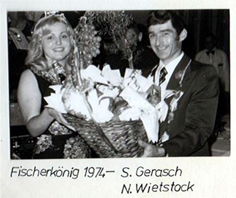 1977: Karl Diekmann( 1. Vors. von 1950 bis 1971) mit seiner Gattin beim Damenangeln am Ehrener Altarm