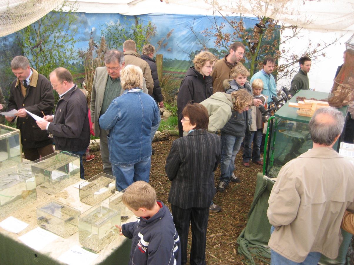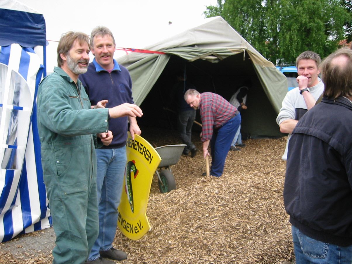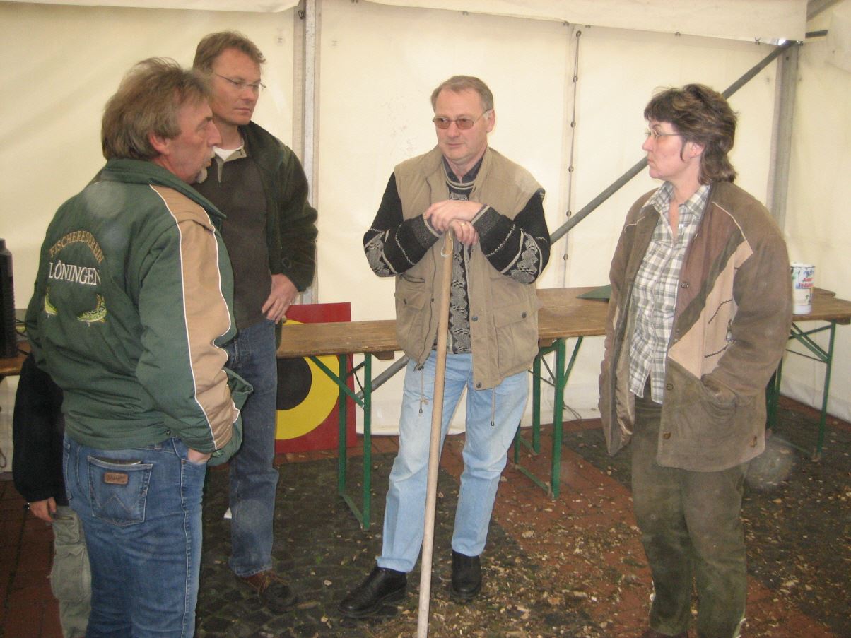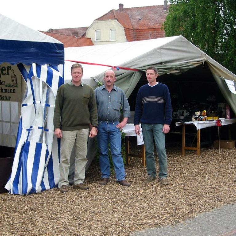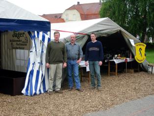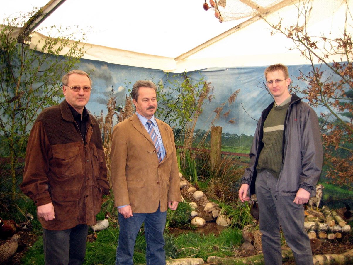 Das Löninger Hasefest 2006, erstmals zusammen mit den Jägern des Hegerings mit einer gemeinsamen Ausstellung in einem großen Zelt, im Bild Rudolf Thomann(FV Löningen), Bodo Zaudtke(LFV Weser-Ems) und Christian Lübbers(Hegering Löningen)