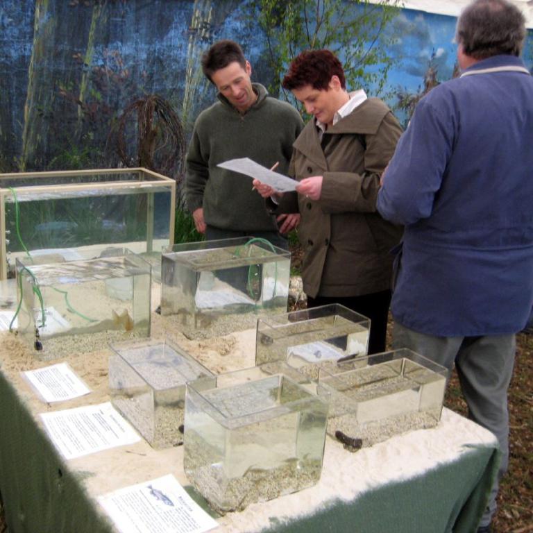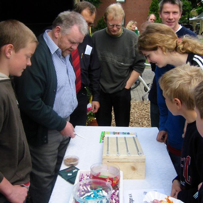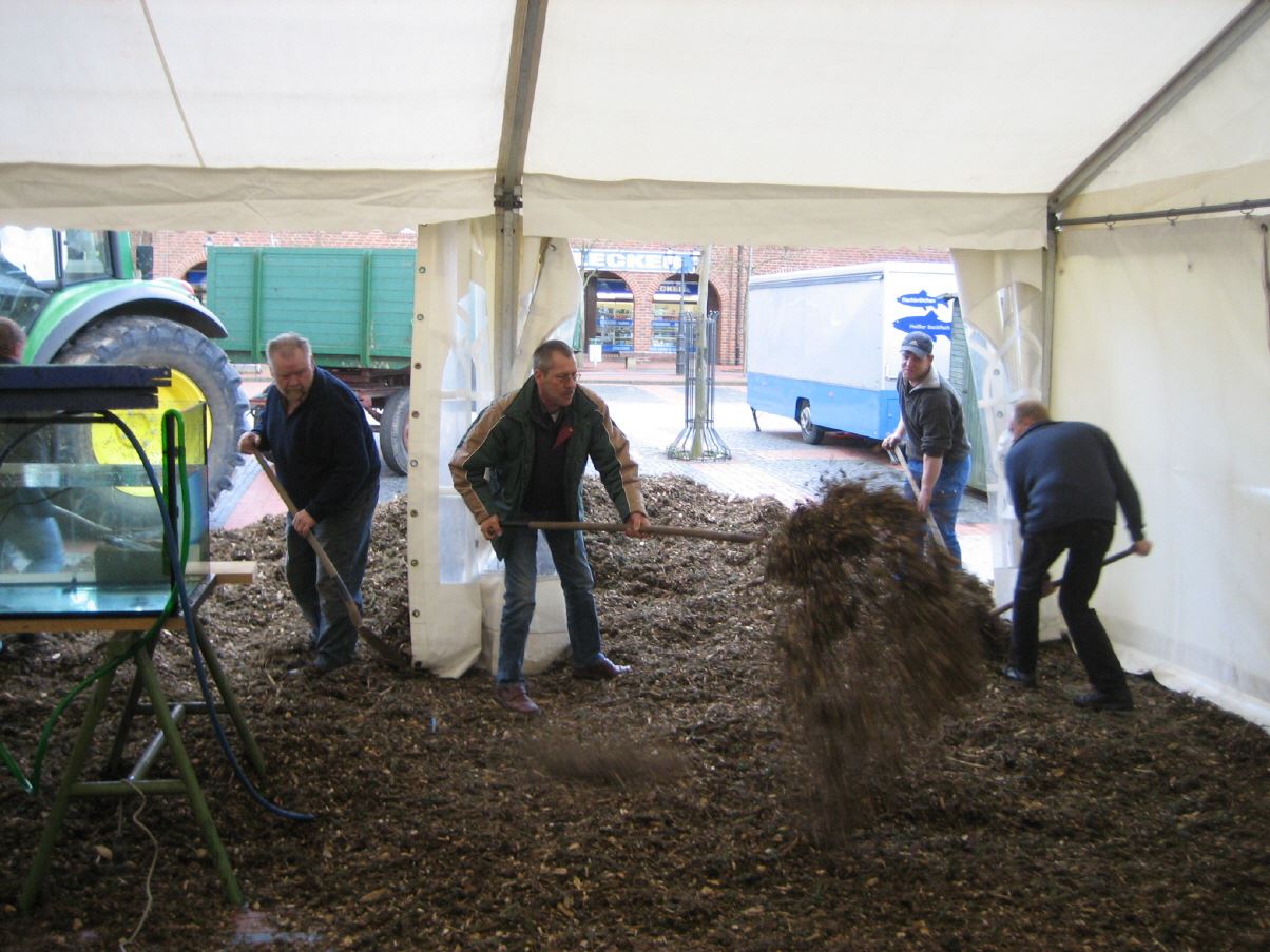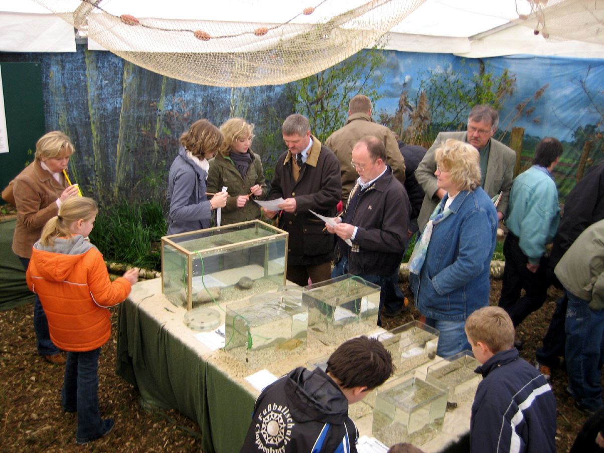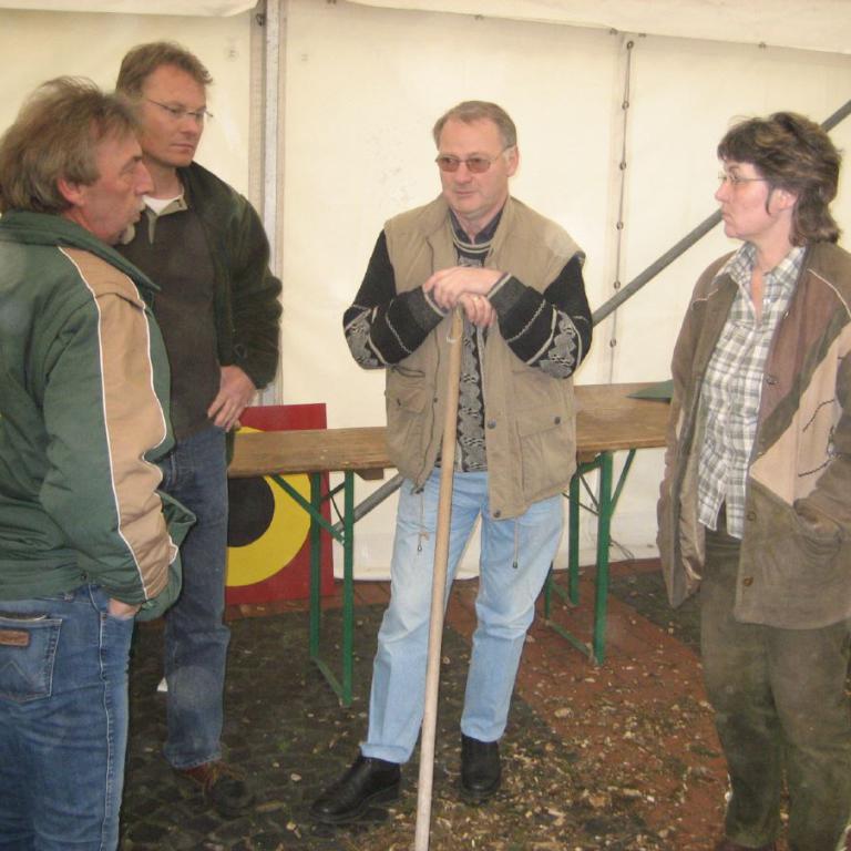 Das Löninger Hasefest 2006, erstmals zusammen mit den Jägern des Hegerings mit einer gemeinsamen Ausstellung in einem großen Zelt, im Bild Rudolf Thomann(FV Löningen), Bodo Zaudtke(LFV Weser-Ems) und Christian Lübbers(Hegering Löningen)