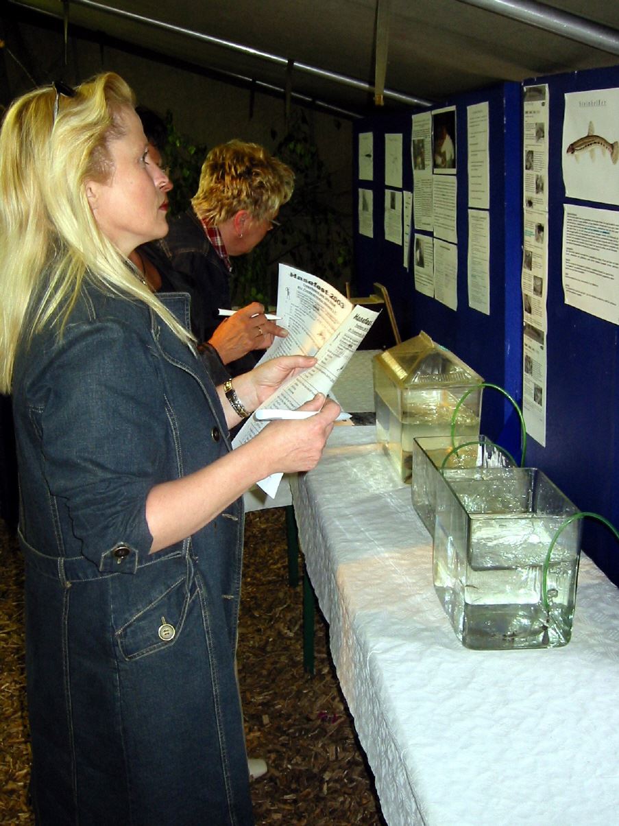 2002: Ehrung für die besonders engagierte Anglerin Katharina Ostermann durch die Jugendwarte "Porky" Lüken und Karl-Heinz Bischoff