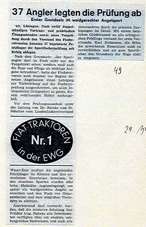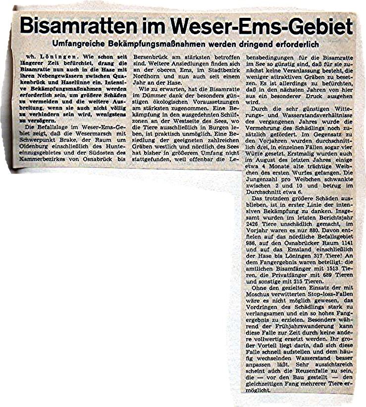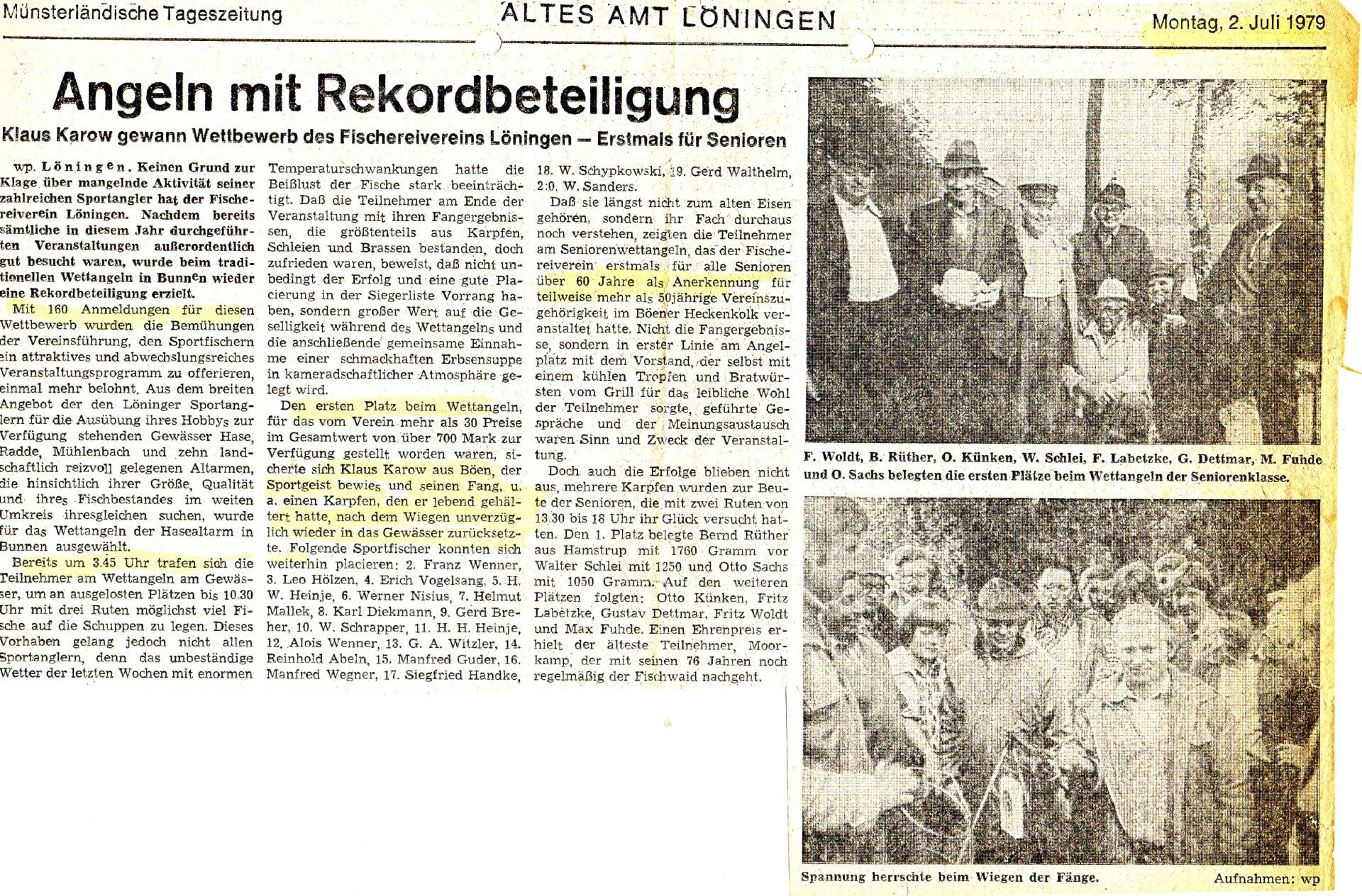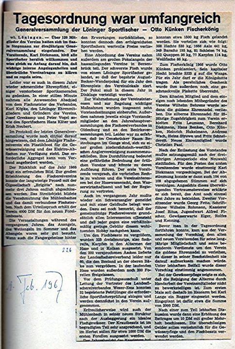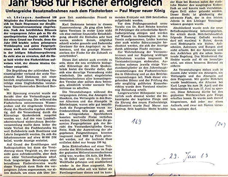 Beträchtliche Schäden richtete der Schneewinter 1978/79 in den Gewässern des Fischereivereins Löningen an. Große Mengen Fische waren durch den langen Eisgang und durch die Schneedecke, die das Wasser abdunkelte, erstickt. So war keine Sauerstofferzeugung durch Unterwasserpflanzen mehr möglich.